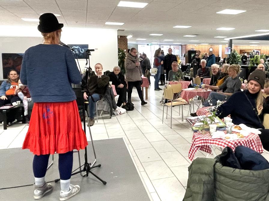 Tag plads i cafeområdet og nyd en kop kaffe mens Pop-op Poeterne læser op af deres egne tekster.