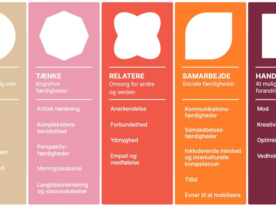 IDG-rammen omfatter 5 dimensioner med 23 færdigheder vi kan bruge som katalysatorer i bæredygtig udvikling til gavn for både den enkelte, grupper og verden. IDG-rammen har samskabelse i centrum og udvikles løbende med bidrag fra eksperter, forskere, praktikere og organisationer over hele verden.