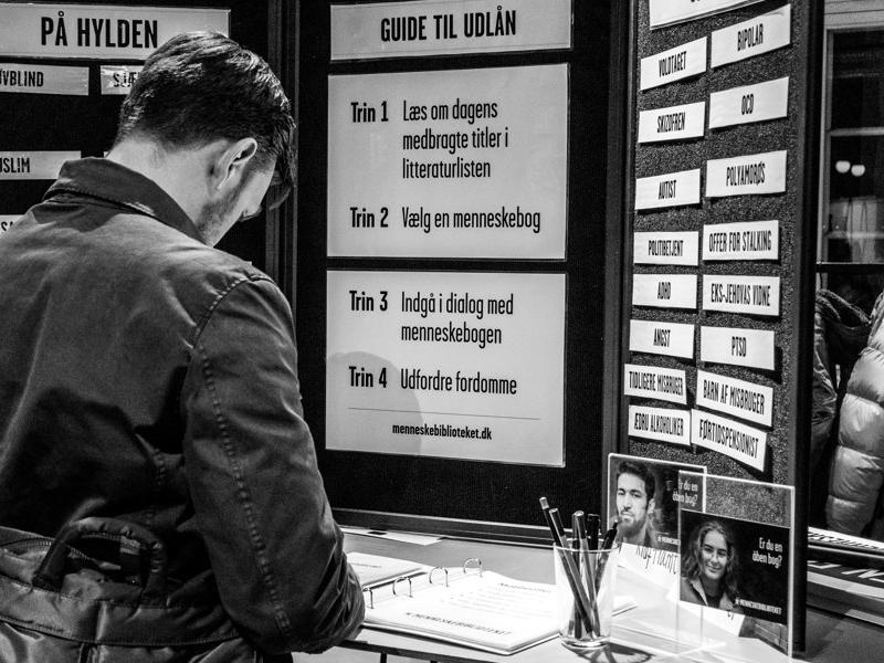 I Menneskebiblioteket erstattes bøger med mennesker. Her kan du "låne" en levende bog – et menneske med en særlig livserfaring, der ofte er præget af fordomme, stereotyper, tabuer eller misforståelser. Gennem ærlige, nysgerrige samtaler får du mulighed for at møde det, du måske frygter, ikke forstår eller aldrig selv har oplevet.