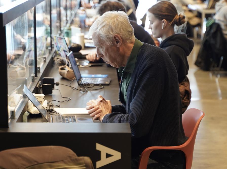Blandt de mange studerende og andre, der dagligt bruger Dokk1 som arbejdssted, er Henning Haahr Andersen på 74 år, som siden 2017 har brugt Dokk1 som sit faste arbejdssted, når han forsker i matematik og er med til at udvikle fremtidens kvantecomputer.