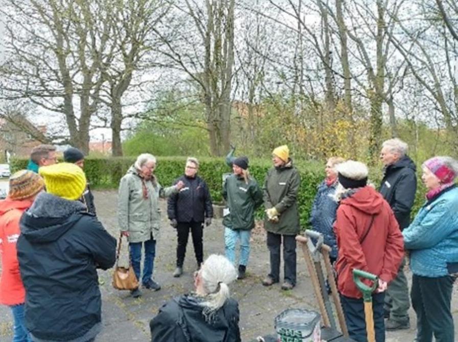 Her mødte 16 personer op til workshop med Marlene Kjeldsen. Greb, skovle, vandkander og fermenterede brændenælder var fundet frem og alle fik lov at mærke, snuse og pakke en kompost fra bunden.
