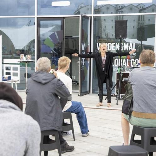 Fernisering på udstillingen "Berøring" - en dag der bød på musik, billeder, oplæg og massage.