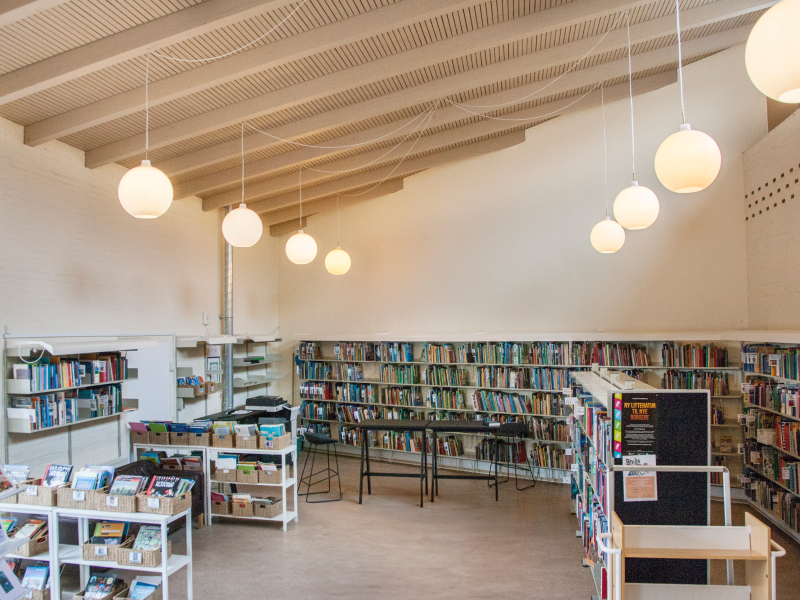 Biblioteket tilbyder udlån af bøger, tidsskrifter, DVD’er og adgang til de digitale medier. Vi er en del af Aarhus Bibliotekerne, og vi kan derfor skaffe materialer hjem fra resten af landet.